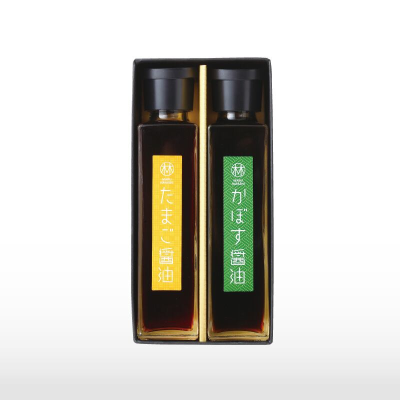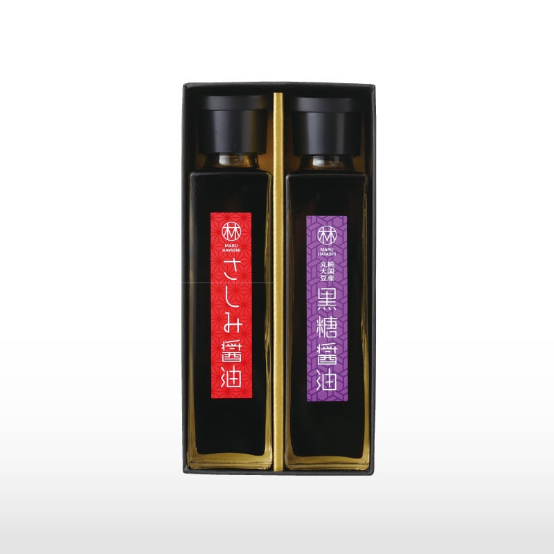 黒糖醤油 / さしみ醤油 / かぼす醤油 / たまご醤油のうちお好きな二本をセットした、贈答などに最適な醤油セットです。